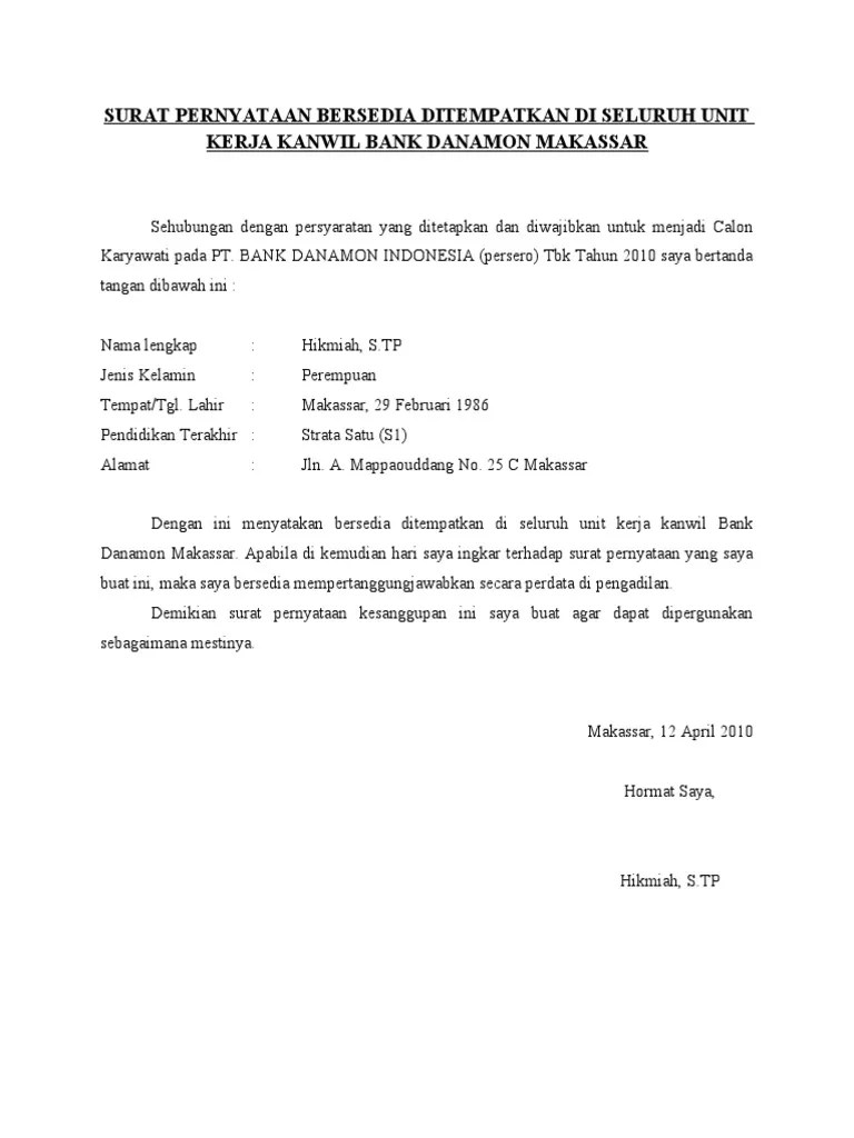 Contoh Surat Pernyataan Penempatan Dana Di Bank / Contoh Surat Pernyataan Nusagates / Bank indonesia/ nama bank umumjkantor pos g1ro eli mana rekening tersebut akan dibuka.